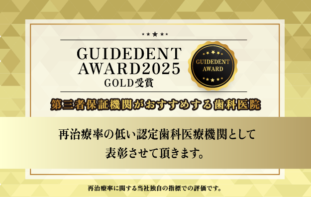 本アワードは、ガイドデント認定歯科医療機関約3,800医院の中から、上位150医院のみが選出されるものです。